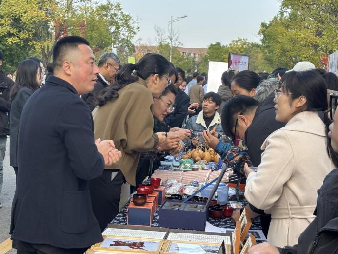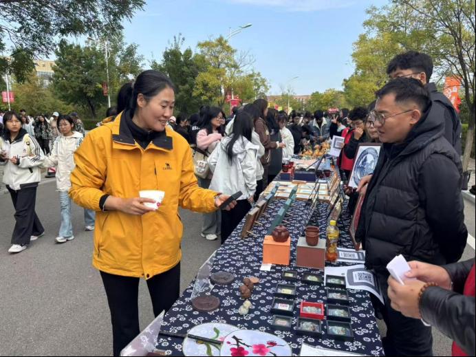 我院在本次活动中负责非遗文创产品的展演,展示了漆器、刺绣、剪纸、皮雕、皮影、陶艺、制香、面塑等9个非遗项目,向师生们传递了传统文化的魅力和深厚底蕴。特别值得一提的是,美术教育专业的学生们在山楂林中进行“身临其境”的写生创作,他们在品尝山楂的同时,巧妙融合美术专业特色与传统文化元素,用画笔捕捉大自然的美丽与生活的韵味,充分展现了我院学子的创新能力与艺术素养。