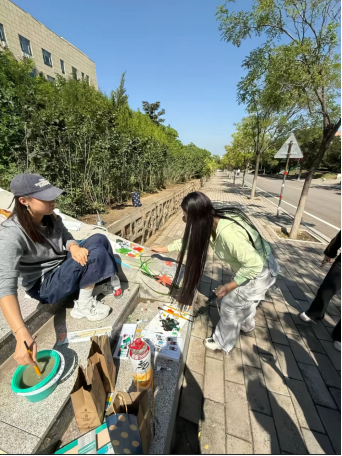 近期,我校部分台阶、墙体因长期使用,出现边角磨损、漆面剥落现象,既影响校园视觉美感,也存在轻微安全隐患。我院组建“艺绘校园”志愿者团队,学子发挥专业所长,利用课后、周末等课余时间,以专业绘画技艺为破损台阶“焕新”,用艺术笔触诠释青春担当与专业温度。